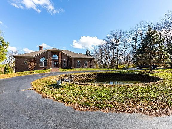 An exquisite custom built ranch sitting on a scenic & secluded 3 acres adjacent to Richmond City limits. This 6,000 + sq. ft. home w/circular drive offers 3BRs, 3BAs, hardwood & tile flooring throughout main level, 12-16 foot ceilings with crown molding, a spacious sun room/living room w/fireplace overlooking a beautiful bluegrass farm. Allowance given for kitchen counter tops. It has a breakfast nook, living room, formal dining room, nice office w/built in book shelves. The partially finished walk out basement has an additional kitchen, bath & room to finish additional bed rooms. Location is magnificent by enjoying the tranquil life of country living while having the conveniences of the city. Only 1 mile from I-75 exit 90.