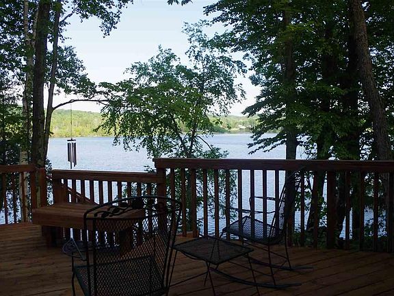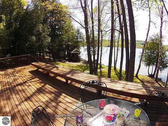 Intermediate Lake gem! Over 200 feet of private sandy waterfront on 3.5 acres. Beautifully updated home is bright and open with amazing views of the lake and gorgeous sunsets. Extensive decking for outdoor entertaining. The master suite has an inviting sitting area overlooking the lake, plus 2 full bathrooms and 2 walk in closets. Two additional bedrooms plus an office. Attached garage plus an additional garage to store the "toys" or would make an excellent bunk house. Playhouse for the kids or storage down by the lake. Blacktop drive on public maintained paved road. In town conveniences such as natural gas and cable. New roof. A must see!