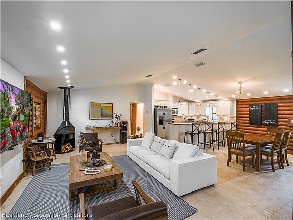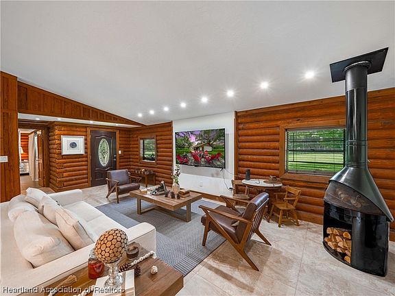 A Great escape to your own country retreat! Enter the gate & drive under an enchanting canopy of mature oaks to this tranquil & private property of nearly 10 acres w/approximately 100 citrus trees, a pond w/dock, pole barn, detached garage AND workshop that provide tons of storage; not to mention the property is fenced & includes stalls to provide a safe & relaxing spot for your livestock too! Whether you’re hanging out eating s'mores around the fire-pit, sitting on the front porch rocking chairs sharing stories or playing board games inside; entertaining family & friends is a real comfort here. The interior offers living room w/vaulted ceilings, stand-alone wood-burning fireplace, log/wood details & natural lighting. The kitchen is at the heart of the home open to the living & dining area featuring butcher-block tops w/plenty of counter space, breakfast bar & white cabinetry featuring under cabinet lighting, neutral color backsplash & farmhouse sink. You will find 2 cozy bedrooms w/ample storage on one side of the home next to the updated bathroom that features spa like tub/shower combo. The other side of the home you’ll find a comfy master suite w/dual closets, cozy reading nook, doors leading directly to the porch & a luxurious bath w/2 sinks + walk-in shower. A great property to enjoy full-time or as a vacation get-away. Schedule your appointment today!