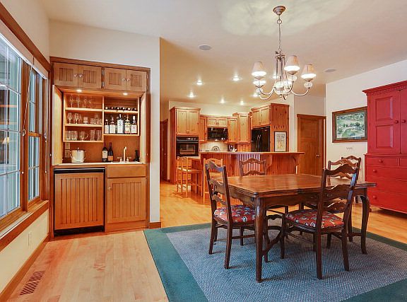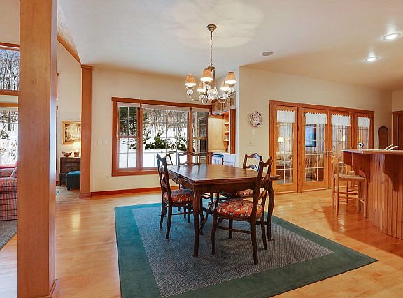 Exceptional, free standing two story home in amenity rich condo development. Bright, spacious open floor plan with maple floors, pine ceilings in living room and porch, stone fireplace and custom cabinetry throughout. In addition to the 3 bedrooms including the master bedroom on the first floor, there are multipurpose rooms on both levels for office/work, library, family room or other desired uses. A heated, 3 season screened porch lead to a stone patio with secluded perennial gardens surrounded by the beauty of a mixed forest. Short walk on forest paths to Ellison Bay beach, restaurants and shopping.