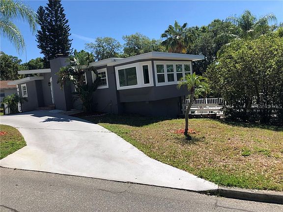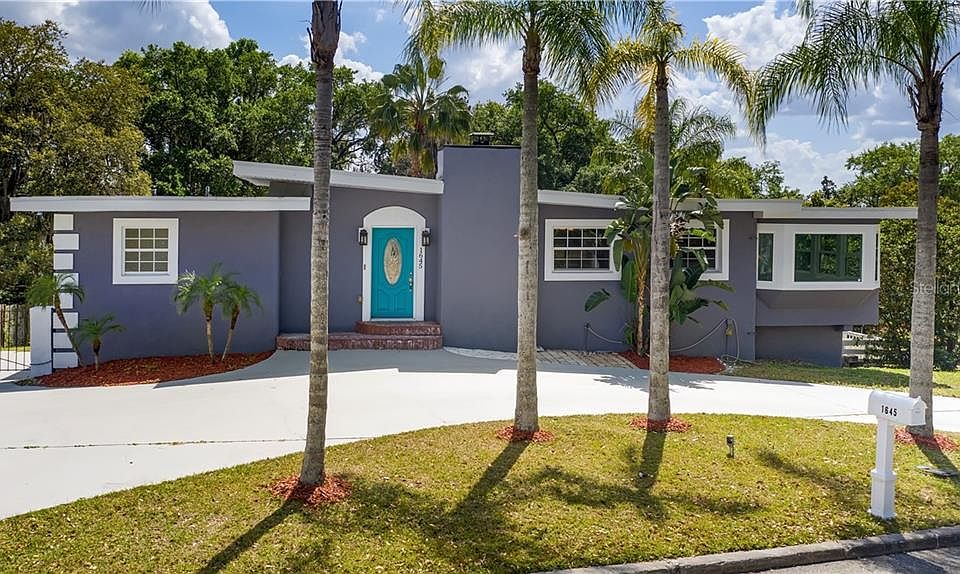 This is a must see, one of a kind, sleek 1950's Mid-Century Modern Contemporary home. Featuring two stories and a potential MIL suite, this 3 Bed/4 Bath, spit floor plan home is ideal for many situations. Talk about curb appeal. From its circular drive, freshly painted exterior, the wrought iron backyard entry gates & matching window accents, & recently manicured landscaping, this home has HUGE potential. Ample windows allow for tons of natural light throughout the home. Get cozy in living room featuring a built in fire place, or entertain from the recently renovated kitchen with NEWER cabinets, granite counter-tops & stainless steel appliances. Enjoy views of Lake Minnehaha with friends & family from the spacious second story wrap around patio, or relax under the outdoor gazebo, overlooking the sparkling 280' sq foot resort style in-ground pool w/over-sized deck. Need space? This home sits on a .50 AC+ yard w/mature oaks, is fenced & provides for plenty of parking. Addt'l rooms include an extended sun-room, an under-air converted garage with its own bathroom, & a utility room. Create a playhouse in the out shed or use it for additional yard storage. Seller started to renovate and has done most of the hard work! NEW roof 2018, NEW flooring throughout, recessed lighting, and newly painted interior. Located in the desired, "Old Clermont" area, close to downtown Clermont, the Hospital, shopping, restaurants, the public boat launch on Chain of Lakes & NO HOA! Bring your Contractor and make this your forever home!