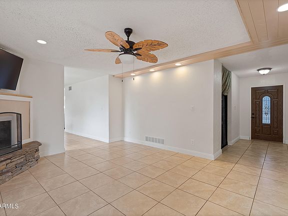 Beautiful corner lot home! Get ready to create great memories in your new charming living room by the fireplace; the LED lights brighten this space perfectly at night! Check out that kitchen! Stainless steel appliances, gorgeous countertops, and a breakfast bar are some of the features. Very good size master bedroom that includes walk-in closet and access to your new Arizona room - enjoy our wonderful monsoon season right from your master bedroom! Relax and spend quality time outdoors under the covered patio or by the firepit! And keep your tools safe from the elements in the storage shed. This home won't last long, see it today!