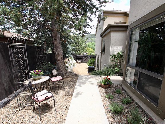 Hidden Valley Ranch is Perfect Living! Live amoung the beautiful pines in a fantastic neighborhood. This split level Patio Home has 1822 sq feet with a 20x20 ft covered patio. Ideal for the young at heart or the retired couple wanting easy maintance living, great social activities and ammenities.This 3 bedroom, 2 bath, 2 Patio home has lots of extras. Newly remodeled beautiful landscaped yard. Completely fenced yard with a waterfall rock garden and plantings amoung the rocks. Lower patio opens to a large 20ft. x 20ft. private covered patio with fabulous hot tub for relaxation. Back gate opens to a stairway that leads to the pool!Newly remodeled kitchen with corian countertop, slide out storage cabinents, pantry storage with lots of additional storage in the garage.