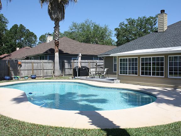 Lovely 4 Bdrm 2 bath pool home (pool service included) in the Fleming Island area, just 15 minutes from NAS Jax, 5 minute walk to Moccasin Park. The lovely Florida room adds 390 square feet to the living space, and is great for gaming or sitting by the pool. Fenced in back yard offers privacy as well as various fruits(Lemon and orange trees as well as raspberry and grape bushes).Split bedrooms, master bedroom suite includes double sink and garden tub. Laminated flooring custom bead board and crown molding. Convenient to shopping and dining. Complete pest control for exterior and interior. The home has a security system with video surveillance that can be hooked up at the tenants expense. Pets limited to 25lbs or under w/ $25 per pet per month pet rent(dogs not of restricted breeds).No Cats
