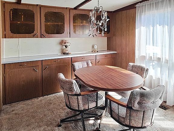 Doublewide in 55+ Senior park close to shopping and freeway access. This 3 bedroom with1.75 bathrooms is rare in this MHP. Corner lot with an Enclosed garage attached to the mobile. This lot has a low maintenance fenced back yard with plenty of storage in the sheds. Don't wait, the park rent is very reasonable.