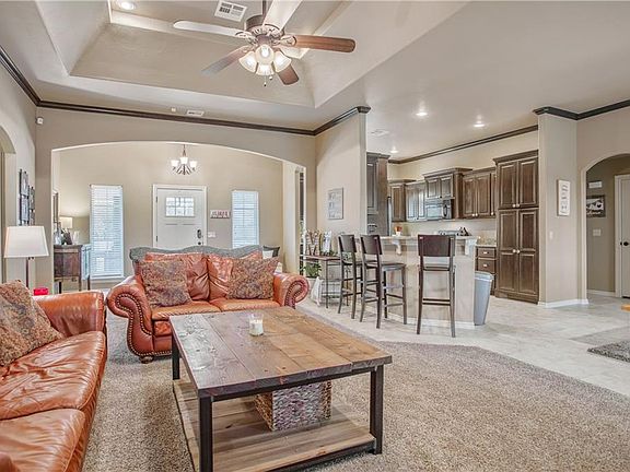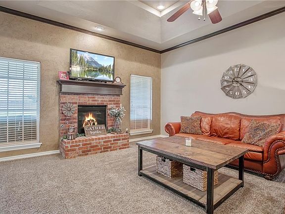 This charming, picture perfect, 3bd, 2bth home is a must see! From the beautiful front porch to the gorgeous interior, you will feel right at home! This home features a large open concept that is perfect for entertaining! The kitchen has beautiful granite countertops, lovely wooden cabinets and a breakfast bar for extra seating. The large open living room has a cozy fireplace, a beautiful tray ceiling and crown molding throughout. The master bedroom features a huge walk-in closet, tray ceiling, new crown molding and patio access. The master bath has a huge garden tub, separate walk in shower and double vanity. The home sits on just over a half an acre. The backyard is fully fenced with a new wooden, privacy fence so you can spend your evenings relaxing on the covered patio. There are underground water sprinklers to keep your lawn green all summer long and a home security system to keep you safe! Home has easy access to I-35. **Seller is offering a $1000 flooring allowance**
