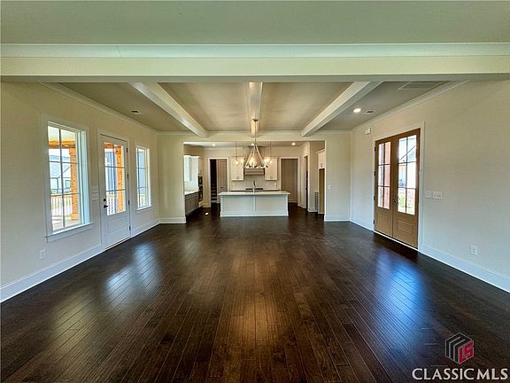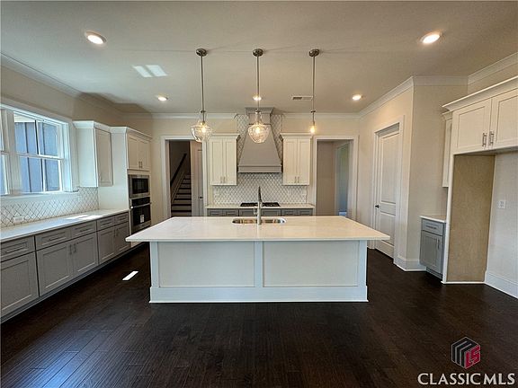 Welcome to Luxury Cottages living in Watkinsville’s premiere community Trove. Cottage 5 features the primary bedroom on the main with 4 bedrooms, and 3.5 baths. On the main level is a foyer opening into the family room, gourmet kitchen, family room, office, and primary bedroom. The gourmet kitchen features granite countertops, tile backsplash, an island, a pantry, gourmet stainless steel appliances, and hardwood floors. The primary bedroom has a beautiful bathroom and walk-in closet. Stairs w/ oak handrails and wrought iron spindles lead upstairs. 2nd floor features and a flex room, 3 secondary bedrooms and 2 baths. The exterior features a covered deck with a fireplace. This home features an unfinished basement as well!