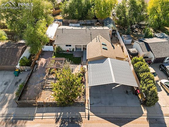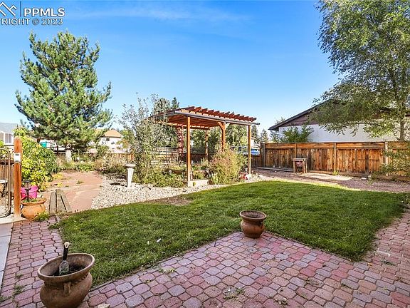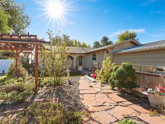 Main Level Living at its best! Updated stucco ranch style home in the established neighborhood of Cimarron-Westridge. No HOA. Fully fenced 0.20-acre lot with mature trees and shrubs. Enjoy the Colorado sunshine from the covered front porch and paver patio. Central air and heat for year-round comfort. The front door features a beautiful lead glass inset and storm door. The Front Entry has a closet and gorgeous hardwood floors through the Entry and Living Rm. Large open living areas provide great space for entertaining family and friends. The Living Rm/Dining Rm features paneled walls, a lighted ceiling fan, and pellet stove fireplace w/ stone surround and raised hearth for chilly winter nights. The Walk-Out Kitchen boasts ceramic tile floors, a counter bar w/ pendant lights for informal dining, a pantry, and ample cabinets w/ granite countertops for storage and easy food preparation. Stainless steel appliances include a gas double oven range, microwave, dishwasher, trash compactor, and French door refrigerator. ML Laundry w/ washer and dryer that stay. The large Family Rm has neutral carpet and hosts a wall of built-in cabinets and shelves as well as window seats w/ additional built-in storage. The Primary Owner’s Suite features neutral carpet, a lighted ceiling fan, and adjoining Full Bathroom w/ vanity, mirrored medicine cabinet, and tiled tub/shower. 3 more BRs with neutral carpet share a full Hall Bathroom w/ vanity, mirror, pedestal sink, and tiled tub/shower. 2 carports to store a total of 6 vehicles. The fenced backyard provides a peaceful, private oasis. It has raised planters for gardens, a storage shed for tools and toys, and several outdoor spaces for dining and relaxation including a paver patio, an expansive stamped concrete patio and pergola, & a wood deck. Located close to schools, parks, open space, and community walking trails. Easy commute to Peterson Space Force Base and Ft Carson. An amazing home just waiting for you to call it your own!