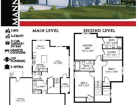- Breakfast Bar, Pantry, Granite Counters, Number of Baths Upper Level: 2