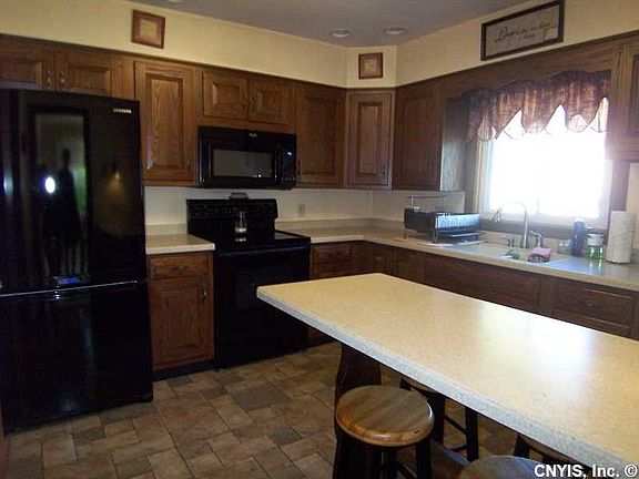 Adorable 3 bedroom home has the benefit of Sherrill municipal power and VVS schools. Functional and updated kitchen has plenty of cabinets with solid surface counters and newer stove and refrigerator. Dining room with hardwood floor and slider to rear deck. Large living room with carpet that has hardwood floors underneath. Full bath is spacious. Full basement and 1.5 car detached garage. Electric FWA and Central air. Great size lot of almost half an acre!
