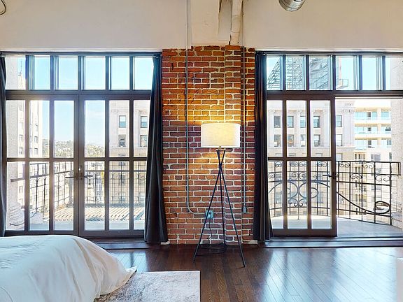 Light and bright rare double balcony loft. Two sets of beautiful French Doors and floor to ceiling windows. Step outside onto your balconies and feel sunshine from your 9th floor home. The larger balcony is the only one of its kind in the entire building with the French Doors. This amazing loft with its 15' ceilings is a must see. Stunning views from the privacy of your own balconies. Landmark views of the Hollywood Sign and Capitol Records to the north, Griffith Park & the Observatory to the east and city lights to the south. The fifteen-foot ceilings with an open concept give you a feeling of spaciousness. Original bricks from the 1920's located on the east wall frame the large double French Doors. This floor plan is perfectly designed in an L shape with a private bedroom area. The spacious bathroom with its dual sinks and deep soaking tub is adorned with penny tiles. The Broadway Hollywood building offers a twenty-four-hour front desk attendant, valet parking, and controlled access. This historic building offers a beautiful roof top pool, spa, cabanas, and gym. The rooftop pool includes unobstructed views of the lush hills, Hollywood Sign, and Capitol Records. Entertain your most discerning guests or clients from your home or the roof top pool deck. Broadway Hollywood is a full-service building, and a Historic Mills Act Building with amazing property tax discounts. Current 2024 Prop Tax was $2,579.00 for the entire year!