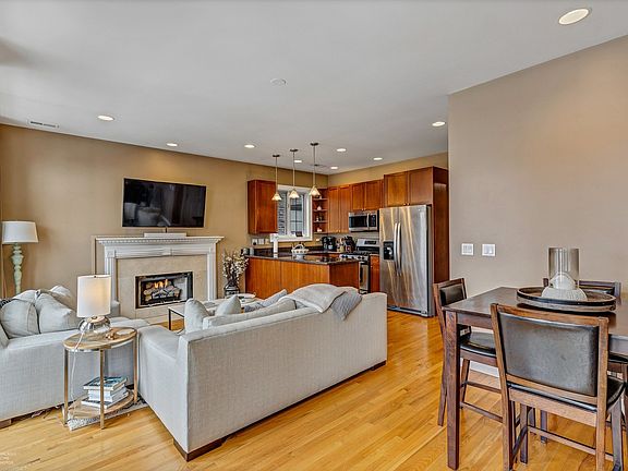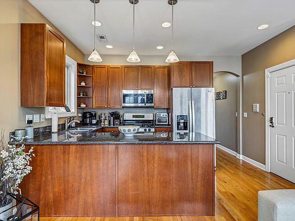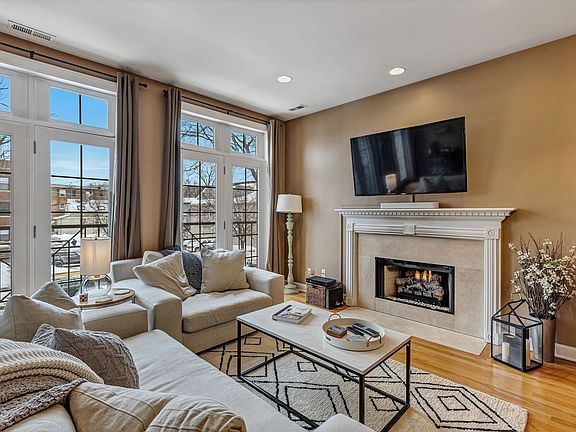 Beautiful Lakeview 2 bed/ 2 bath condo in a small intimate 4 unit building. Hardwood floors throughout open floor plan. Gas fireplace in living/dining room, open concept kitchen with cherry wood cabinets, stainless steel appliances, and huge peninsula for plenty of counter space. Spacious 2nd bedroom, marble tiled guest bath with undermount sink vanity. Large primary bedroom can accommodate a king size bed, with en suite bathroom and dual sink vanity. Deck perfect for grilling off the back and in-unit washer dryer make this a wonderful place to live and stay for awhile. Close to CTA Bus and L , Parks, Shops, Restaurants, and more! Less than 3 Blocks from Southport Corridor, Roscoe Village, and North Center. Garage parking and extra Storage included.