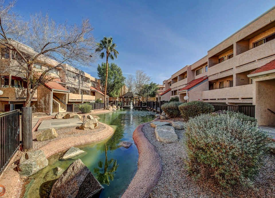 Great move-in ready home in Mesa! Open concept main living area is ideal for entertaining. Open kitchen offers beautiful white cabinets with upgraded modern hardware. Split floor plan. Spacious master suite with upgraded vanity and fixtures in the bathroom. Down the hall is another bedroom and full bathroom with upgraded vanity and fixtures. Tile throughout the common areas and laminate floors in the bedrooms. Neutral paint throughout the home. Both the living room and the master bedroom have sliding glass doors that lead to the semi-private patio, great for relaxing in the evening. Community features mature palm trees, unique water features, community pavilion, and pool. Complex is in a great location, roughly 1 mile from 2 major highways and minutes from shopping and entertainment!!