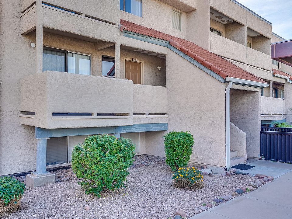 Very special home in the lovely Water Works Community of Dobson Ranch. This 2 bedroom, 2.5 bath has just under 1200 square feet. Nice open floor plan with great room anchored by a cozy fireplace and open to the dining room and kitchen. This galley kitchen features plenty of cabinet and counter space, stainless appliances and a great pass through to the dining area. Nice storage under the staircase and stackable washer/dryer in unit. Large master suite with on trend updates in the master bath. Great Balcony area outside bedrooms! Fantastic community with nice common areas, ponds winding their way through the neighborhood, fountains and community pool at this complex as well as use of the Dobson Ranch community pools, community centers and recreation programming. Close to everything!!