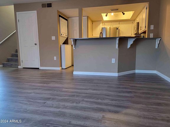 This 2BR, 1.5BA move-in ready Water Works condo is nicely upgraded, updated AND priced to sell! Kitchen includes granite counters and tile backsplash. The flooring (throughout), range and microwave are all new (2024). Fridge, stacked washer/dryer are all newer and all stay. Fresh interior paint. Master bath was recently remodeled, too. Close to Mesa Community College, ASU and Freeways, as well as dining & entertainment! This great community also features many amenities including pool, spa workout facility, etc. Vacant and easy to show.