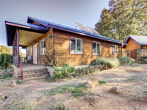 Unique,independent,sustainable and affordable value on over 21 acres!Round Mountain Straw Bale House built in 2004 with efficient solar charged battery power. 4,000 sq ft shop. 2nd home is a 2 bed, 2 bath on PG&E power. Spring Fed Water! Beautiful & Artistic retreat above the heat. Views for miles & miles. Milk Barn. Multiple outbuildings & storage. Straw house has enchanting indoor bathroom plus detached shower/sauna room. Root cellar made of pasture rocks from property.Cedar & Pine was milled at local Phillips Steam Mill in Oak Run. View of Mount Shasta & Hatchet Mountain. Straw Bale walls are 24 inches thick,have estimated R-52 insulation value and 2 layers of R-19 in ceiling. Lovely plastered interior walls. Fully fenced & cross fenced. Full Outdoor Summer kitchen.