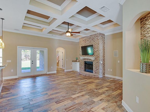 Projected completion end of March.2638 square foot 4 Bedroom, 3 Bath, 3 car garage, Craftsman style Brick/Hardboard Home. This home features 18'' x 18'' ceramic tile in kitchen, foyer, master bath, guest bath and 2nd master suite bath. Custom 5 1/4'' trimmed baseboards throughout. Two staged Crown molding in Master bedroom, Great room, den/office, dining room. and foyer, Kitchen has custom staggered cabinets with crown molding, under cabinet mood lighting, quality granite tops, tile back splash, large island that opens from two-sides, and has a built-in desk in kitchen. Exterior of the home has irrigation and sprinkler system included. Oversized Garage has exterior utility door to side for convenient access, pull down attic stairs, and is painted and trimmed with a garage door opener All bedrooms have ceiling fans and easy access double doors to closets. Master bedroom location is private split design and it features, vaulted ceiling, crown molding, corner can-lights. Master bath is large with 2 separate sinks large his and hers vanities, large linen closet, private water closet with door, a window, large tub, ceramic tile shower with seamless shower doors, 18" tile floors. Large covered rear porch with three exterior ceiling fans. The Interior features knock down ceilings, bull nosed corners in common areas, and rocker switches, Double 10 lite wood French doors to the study. Quality Oil rubbed bronze fixtures, Highly efficient energy 14 SEER Heat Pump. Earth Cents Energy Saving design, New High quality home, with many extras. Amazing features to include underground utilities, low E vinyl windows, granite in all baths, Whirlpool Gold appliances and a built in mud room. Pictures are similar, but not necessarily the subject property; pics are of Prior home of same floor plan built.