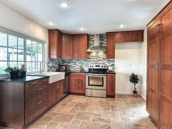 Complete info: http://16450vernon.AgentMarketing.com - Beautifully Remodeled Single Story Home Features Central A/C, Vaulted Ceilings, Extensive Recessed Lighting Throughout, Newer Dual Pane French Windows and Doors, Raised Panel Interior Doors, Designer Paint, Travertine & Bamboo Wood Flooring, Designer Light Fixtures, Solid Wood Entry Door with Beveled Glass, and Completely Remodeled Kitchen and Bathrooms. Large Formal Living Room with vaulted Ceiling, Bay Window, & Travertine Flooring. Formal Dining Room with Bay Window. Kitchen has Granite Countertops, Glass Tile Backsplash, Stainless Appliances, Farmer's Sink, and Custom Cabinetry Including 2 Pantries. Large Family Room is Open to Kitchen with Fireplace & Bamboo Flooring. Master Suite has Walk-In Closet & Slider to Backyard. Remodeled Bathrooms Include Designer Fixtures, Marble Countertops (Dual Sinks in Master Bath), Framed Mirrors, Travertine Flooring, Designer Tile Surrounds & Guest Bath has Custom Linen Cabinetry. Lovely Backyard has New Grass Sod, Covered Patio, Covered Above-Ground Spa, 2 Extra Wide Side Yards, and Block Wall Fencing. Direct Access 2 Car Garage with Built-Ins. Great Curb Appeal with Tropical Landscaping. Close to Shopping, Restaurants, Parks, & Schools. Short Drive to Beach.