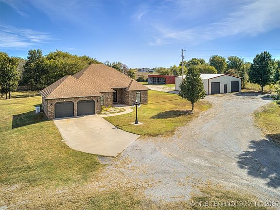 STUNNING FULL-BRICK HOME ON 4.8 +/- ACRES WITH SHOP, SHED, AND POND IN COWETA! This full-brick, ranch-style home on 4.8 +/- acres in Coweta offers space, convenience, and great amenities just minutes from major highways. With 2,246 square feet (Courthouse), this home includes 3 bedrooms, 2 bathrooms, and an open layout designed for comfort and functionality. The vaulted ceilings, radiant heated flooring, and granite countertops add a touch of quality, while the stainless steel appliances and a spacious master suite with a whirlpool tub and makeup counter make everyday living more enjoyable. Outside, you'll find a 40’x40’ shop with ample space for equipment, and a 40’x20’ loafing shed for livestock. A stocked pond with catfish adds to the property's appeal, and the backup generator ensures peace of mind. Fully fenced and set up for animals, this property is 2 miles from HWY 51 and the Muskogee Turnpike, and it's just minutes from Coweta, Broken Arrow, and Tulsa. A great opportunity for those looking for country space with city convenience. Schedule a private showing today! Buyer's Agents welcome!