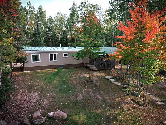 Want to feel off the grid while still having conveniences like high-speed internet, a newly remodeled home, a completely set up solar power system, and a new pole building with over 2,000 square feet? Then this property is for you! This mobile home was completely remodeled and customized in the last 6 years with high quality and unique features you won't find just anywhere. Enter into the back entry way/utility room where there is laundry, plenty of storage, counter space, and the wood stove. Don't worry about hauling wood in and making a mess because the wood box opens up through the wall right to the wood pile! They thought of everything! Take a step up into the kitchen area that has been completely updated with top quality countertops and cabinets with an open concept into the dining and living room area. Or, head the other way down the hall to the bathroom or two spacious bedrooms. Again, they thought of everything and really maximized the space and installed new barnwood sliding doors. Even the bathroom is outstanding with a beautiful, custom vanity. All new flooring, ceilings, bathroom and kitchen here! Don't forget about sipping coffee in the screened in porch, watching nature. Or go enjoy a hike or ATV ride around the beautiful 40 acres! Plus, enjoy the bordering Great Lakes Lyme land with public access. Still need more reason to love this property? There is a new, 2,040 square foot pole building done up just as nicely as the house! All finished, heated, with a loft and bar area! Plenty of room for toys, to work in, or to even have a party! Call or a showing before this property is gone!