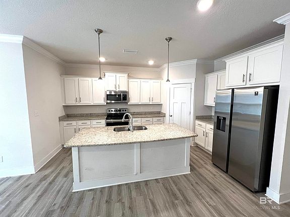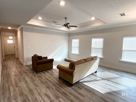 Welcome Home! Come and see this adorable Gold Fortified 4/2 with a two-car garage located on a corner lot that is fully fenced in the Cottages of Aventura. Walk in and fall in love with the open floorplan with 9 ft tray ceilings in the living room and primary bedroom, custom crown molding, granite countertops, painted kitchen cabinets, and SS appliances. The Primary Bedroom features a huge walk in closet and adjoining bathroom with a garden tub and separate shower. The laundry room is attached to the Primary closet for easy access. This home is centrally located for easy access to I-10 and the beach. Alabama Right of Redemption may apply.