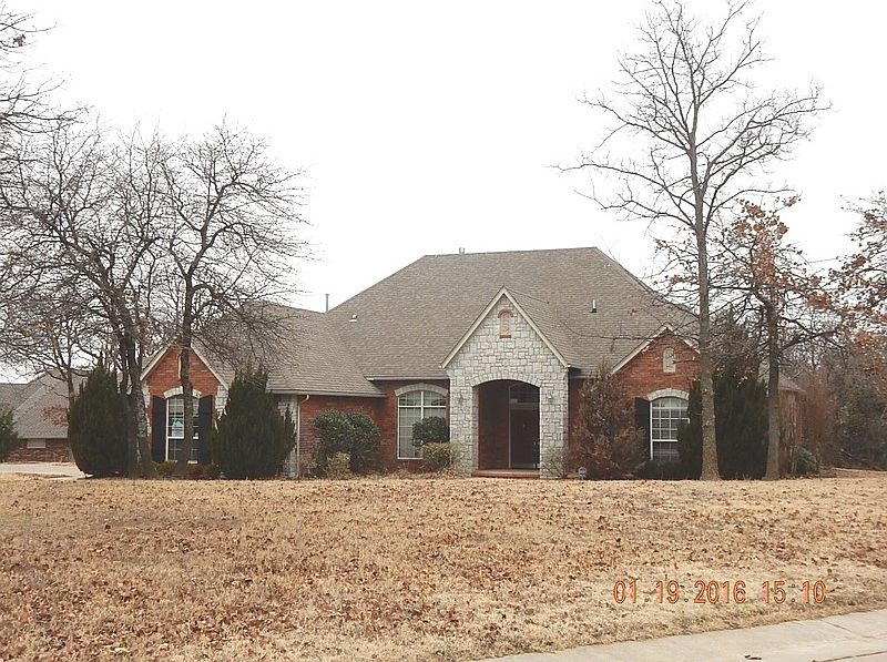 Look at this 4 bedroom, 2 bath, 2871sf home built in 2004 in the Stonegate Crossing Addition in Choctaw. Open living area with a fireplace and built-ins, the kitchen has an island, trash compactor, and lots of cabinet space, dining and formal dining, and an extra room that can be used as an office or study with a fireplace! The master bedroom also has a fireplace and full bath with a walk in closet. Huge backyard, and a 4 car attached garage that sits on 1.04 acres of land.