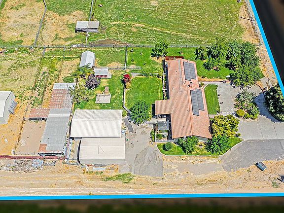 Seller has spared no expense on this gorgeously, updated, efficient property w/all the bells & whistles! Free elect & water from the well. This Tesla Solar beauty sits on almost 5 irrigated acres & has a lg shop w/rollup door & office/storage room. Another barn/shop in the back + a cargo unit. Per Seller Solar has covered all of the past use. The home is adorned w/gorgeous top of the line gold flecked granite/travertine kitchen & baths, gorgeous copper pounded sinks, custom soft close cabinets/drawers, top of the line Kenmore Elite SS appliances, wood type flooring, beautiful, granite fireplace w/cherry mantle, spacious great room w/separate pellet stove. Opportunity knocks here w/unlimited income potential. Attached studio w/separate entrance-used to be a welping unit- could easily be converted to an office, in laws quarters, gym or 15 dog kennels outside w/sep. lg septic behind, x fenced pastures for horses or 4H/FFA animals, feed storage barn or inside stall, shelters in the pastures, tack room, wash rack/stocks, & much more. Work at home and have great income! Super schools! This is quite the package w/thousands $$$$ of instant equity! Best priced by far in the area & turn key for new Buyers. Seller loves her neighbors. This is truly a beauty! Recently app. $889k!