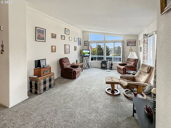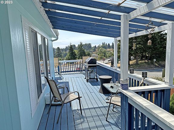 Ocean and River View with Open Floor Plan with over 2,000 square feet, 3 bedrooms, 2 baths, ALL ON ONE LEVEL! Relax and watch the nightly sunset over the Pacific Ocean right outside your windows! Perfect for a Vacation Rental as zoned C1. No maintenance landscaping. With easy access to HWY 101, enjoy downtown Brookings' many shopping opportunities or take a 5-minute stroll down to the harbor where you can enjoy local top-notch restaurants, the Chetco River and the BEACH! New Roof, New Exterior and Interior Paint, New Flooring in Kitchen and Primary Bathroom, and New Main Area Carpet! Integrated Back-up Generex Propane Generator system. Assumable 3% VA loan of $258,000 for eligible veterans.