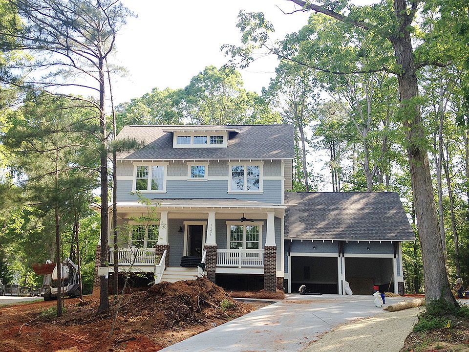 New craftsman home under construction in Ballantyne. Open floor plan with hardwood floors, granite countertops, gas fireplace, crown moulding. Front porch, rear porch, and 2 car attached garage on a large cul-de-sac lot. Green home with an energy performance guarantee.