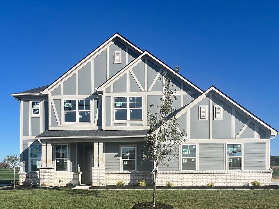 Welcome to the Greenfield model! Step inside to discover a bright, airy, and open-concept layout designed for both entertaining and everyday living. The designer kitchen is a true showpiece, featuring 42" Admiral Blue cabinetry with brushed gold hardware, stunning 3 cm New Calacatta Laza Quartz countertops, and a stainless farmhouse sink. A built-in wall oven and microwave, 36" gas cooktop with vented canopy hood, oversized island, and generous walk-in pantry complete this dream kitchen - perfect for any home chef. Overlooking the cozy cafe area and gathering room, this space is thoughtfully designed for effortless hosting and relaxation. The main level also offers a flex room with a door, ideal for a home office or playroom, along with the Pulte Planning Center, complete with quartz countertops to keep your household organized. The Everyday Entry features built-in storage, creating a convenient drop zone as you transition from the spacious 656 sq. ft. side-load garage into the home. Upstairs, retreat to the luxurious owner's suite, showcasing a tiled shower, comfort-height dual vanity, and a generous walk-in closet. Three additional bedrooms - each with its own walk-in closet - provide plenty of space for family or guests. The expansive game room offers endless possibilities for recreation, while the super-laundry room on the second floor adds a touch of convenience to your daily routine. Discover the perfect blend of convenience and comfort in the HSE School District at Parkside at Finch Creek. Enjoy top-tier amenities, including a clubhouse with a fitness center, pool, playground, pickleball, scenic walking paths and more. Just minutes from I-69 and Hamilton Town Center, you'll have easy access to shopping, dining, and entertainment. Experience the perfect balance of community charm and modern convenience at Parkside at Finch Creek.