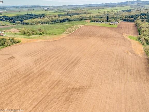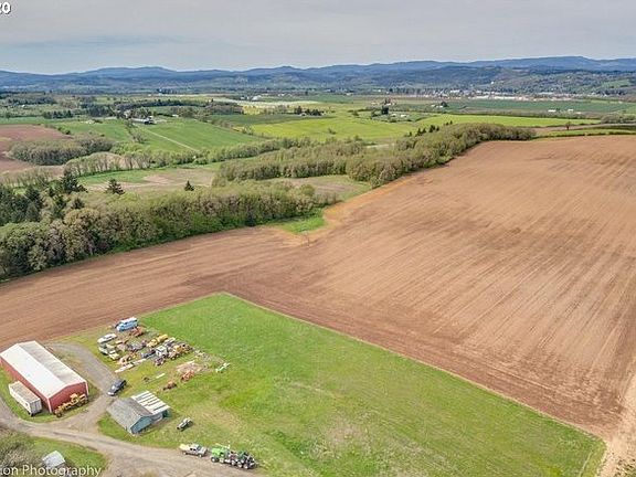 111 Acres prime EFU Zoned level/gentle sloping farm land @ 360 elevation w/rich Bellpine, Woodburn, Rickreall & Hazelair soils, 12 springs, 2 ponds & Mtn views; Bachelor, Hood, Jefferson, St Helens, Adams. 100+ acres ready to plant in open fields/pasture land; Vineyard potential w/Vineyards nearby! Wheat, Oats, Rye Grass, Hay, Dry Land Corn & Gray Oats have flourished. Pear/Apple/Plum Trees. Outbldgs, Pole Barn, farm Office, shop+