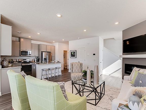 Crystal Park is a brand-new townhome community in Lakeville less than a mile south of Crystal Lake with quick access to 35W. This stunning 2-story Fairfax townhome is impressive at every turn, featuring an open concept main level, including a designer stocked kitchen with gray cabinets, granite countertops, stainless appliances, & large-scale center island, oversized family room with magnificent electric fireplace open onto dining room with access to a personal covered patio, 3-bedrooms, a 2nd floor laundry and home office, another private covered balcony off the primary suite, 26' super deep 2-car garage for lots of storage, smart home package, whole house humidifier and much more! Private dog park for your furry family members! Close to trails, parks, and golf courses. Photos are of similar home.