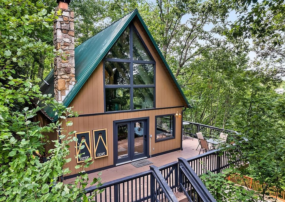 Welcome to Treetop Escape - the perfect mountain retreat! This newly renovated, 3-bedroom (2 bath septic), 2-bath A-frame chalet is nestled within the coveted Chalet Village. With its seasonal mountain views, private wooded lot, and expansive wraparound deck featuring a covered hot tub area, this warm and inviting chalet offers the ideal blend of rustic beauty and modern comfort. Inside, tall ceilings with exposed beams complement the stone fireplace, while walls of windows fill the space with natural light and showcase the serene surroundings. Situated at the end of a quiet dead-end street and close to the national park boundary, abundant wildlife is at your doorstep. Enjoy the convenience of being less than a mile from one of the three chalet village pools and just 2 miles from downtown Gatlinburg, making this the perfect mountain retreat with easy access to town and the National Park entrance.