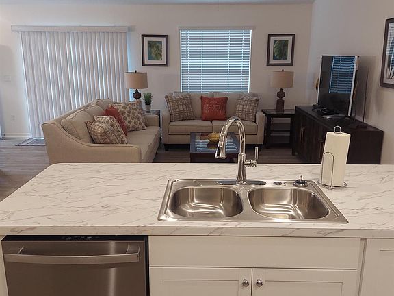 Almost brand new 2\2 Ruby Patio Villa in The Villages. Beautifully furnished in The Village of Lake Denham. King bed in the master and queen in the guest room. Smart TV's in the living room and master bedroom. This home has volume ceilings, stainless steel appliances, inside laundry, composite flooring in the kitchen and living areas, 4 ceiling fans and blinds on all the windows. Fully stocked with kitchen cookware, dishes, flatware and towels. Lanai furniture and washer/dryer coming soon. Conveniently located to Franklin and Homestead Recreation Centers, Mickey Lee Pitch and Putt and Jubilee Putting Course. In addition, it's just a short golf cart drive to Sawgrass Grove and Ezell Recreation. Long Term Furnished Rental Rates No Smoking or Vaping No Pets Golf cart not available. Available: Available starting April 1, 2025 monthly or long term. Amenity Fee, lawn care, garbage and property taxes paid by Landlord. 11% tax, $1000 security deposit, and $150 cleaning fee paid by tenant. Two temporary resident passes available for $50 from The Villages. First and last month's rent plus deposit at signing.