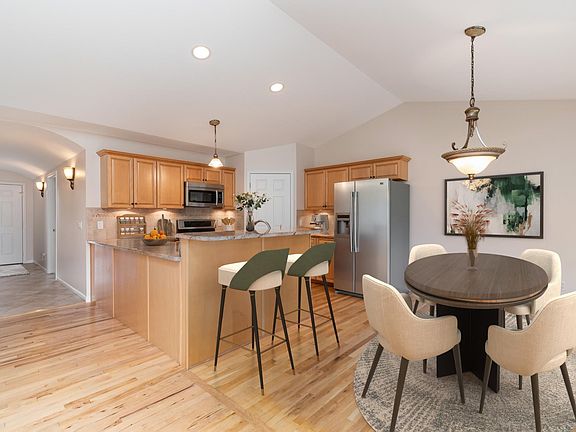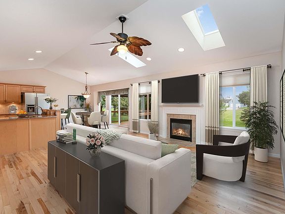 Welcome to your dream home! This beautiful ranch condo offers three bedrooms and three bathrooms, perfect for hosting friends or family. The open-concept living area is filled with natural light from the skylights, and you'll love the hardwood floors that run throughout. Like to cook? Enjoy your beautiful kitchen featuring granite countertops, stainless appliances, and a pantry to store all your cooking necessities. When the weather is nice outdoors, enjoy entertaining in style with two decks- one with a canopy and a patio surrounded by lush greenery. Additionally, this home has two bump-outs, creating extra space in the dining and primary bedroom, and the finished lower level gives you even living and storage areas. And don't forget about the cedar-lined closet in the guest bedroom and barrel ceiling foyer - adding unique luxury elements to this stunning property. You can rest easy knowing there's a whole home generator for any power outages for added protection. Don't miss out on this incredible property – Make it yours today!