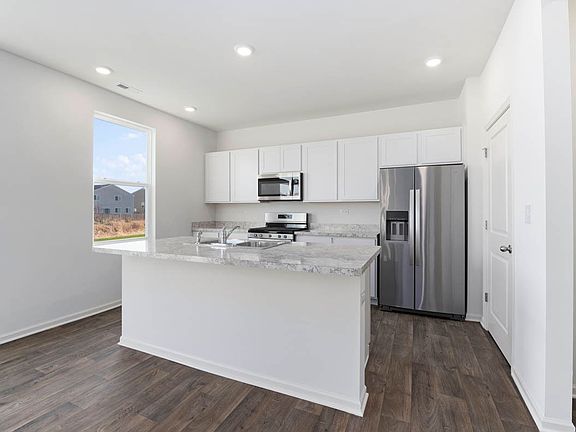 New construction in Pingree Grove's lifestyle clubhouse community! This popular spacious 4-bedroom Bellamy floorplan is waiting for you! An open and flexible floor plan with 2,051 square feet. The interior offers 9 ft. ceilings on the first floor, plus 4 bedrooms on the 2nd floor & large yard that backs to open green space, including a 2 car garage. As soon as you walk into your new home, you will be amazed at the possibilities. A flex room on the main floor gives you the option of a den/office, living room, or playroom. Enjoy everyday meals and entertaining in this open-concept kitchen layout flowing into the perfectly sized family room. The kitchen must-haves are all here: large island with overhang for stools, white designer cabinetry, walk-in pantry, stainless steel appliances, quartz kitchen countertops, and easy-to-maintain flooring. Your primary bedroom features a huge walk-in closet and en suite private bathroom, with raised height dual sink vanity and walk-in shower. No shortage of closet and storage space here, with 3 additional bedrooms and a nicely appointed hall bath. No more carrying loads of laundry up and down the stairs because your new home has a 2nd-floor laundry. Impressive innovative ERV furnace system, tankless water heater, and Smart Home technology round out the amazing features this home has to offer. Make an appointment to see this beautiful 2-story home in Pingree Grove today! NO SSA! All Chicago homes include our America's Smart Home Technology which allows you to monitor and control your home from the comfort of your sofa or from 500 miles away and connects to your home with your smartphone, tablet or computer. Home life can be hands-free. It's never been easier to settle into new routine. Set the scene with your voice, from your phone, through the Qolsys panel which you can schedule it and forget it. Your home will always await you with your personalized settings. Our priority is to make sure you have the right smart home system to grow with you. Our homes speak to Bluetooth, Wi-Fi, Z-Wave and cellular devices so you can sync with almost any smart device. Builder Warranty 1-2-10. Exterior/interior photos of similar home, actual home as built may vary.