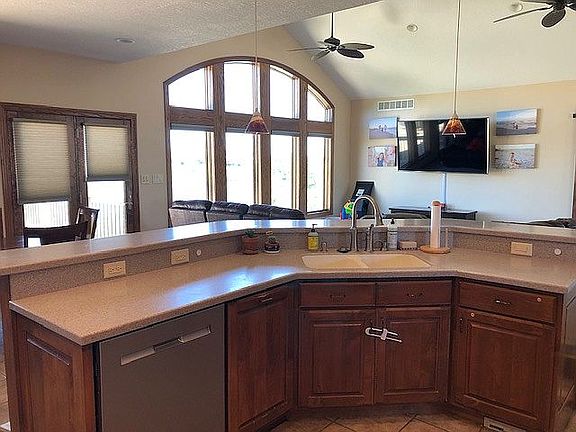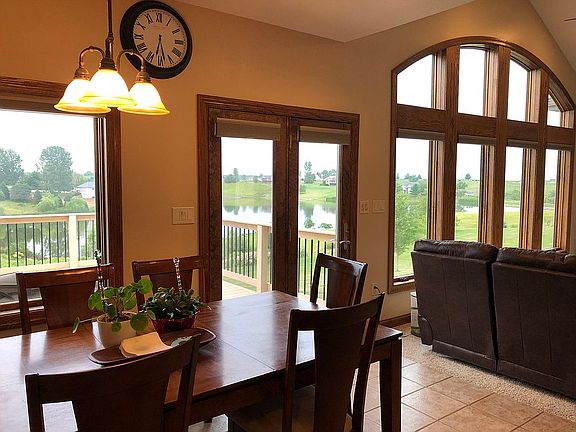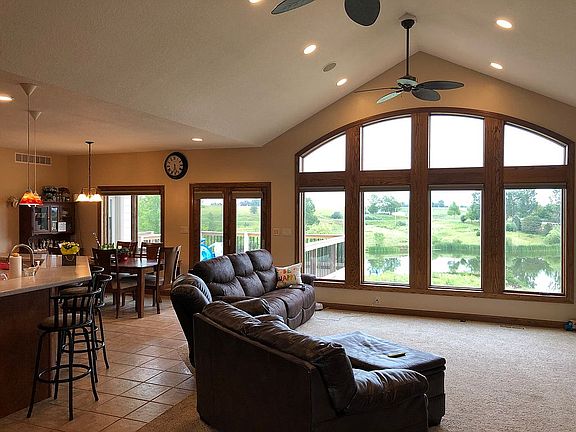 LAKEFRONT! ACREAGE! Pull into the 3 car garage and walk right into the bright, open, window lined great room overlooking the lake! Step out onto the high deck and soak in the views! Awesome open kitchen with bar top seating and an adjacent dining area. Large master bedroom with ensuite. Dual sink, beautifully tiled shower stall, walk-in closet, and private access to the lake facing deck. Two more large bedrooms and a full bath. Walk downstairs to a huge open family room. pull up a stool at the bar for game day! Grab steam in the sauna! Hang out on the garden level patio overlooking the wildflower garden and the lake. Two more bedrooms and a bathroom with another beautifully tiled walk-in shower! Next, into the oversized 3 car garaged shop below with overhead door, with LP heat. Featuring a new geothermal system. Newer roof, window trim, and exterior paint. Get the best of Iowa! Drink your coffee on the deck and watch the sunrise every morning! Make the call! Take a look!