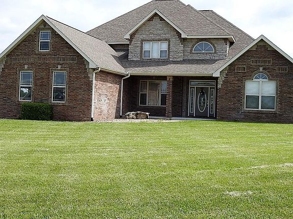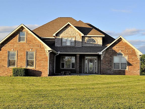This beautiful all-brick home on over 10 acres is located just west of Bolivar. With 4200 sq ft 4 bed, 5 bath, 3 car garage plus a bonus room it has plenty of space to entertain. The architectural details set this home apart including the stone wood burning fireplace, vaulted ceilings, and large windows. The kitchen boasts abundant cabinetry, stainless steel appliances, pantry, island, and bar. French doors lead to an inviting in-ground pool/hot tub area with a privacy fence and a large shop that has living quarters (currently being leased). The master suite includes an over-sized bedroom with a seating area, a walk-in shower, walk-in closet, double sinks, and jetted tub. The 65 inch flat screen TV with surround system stays with the home with any reasonable offer.