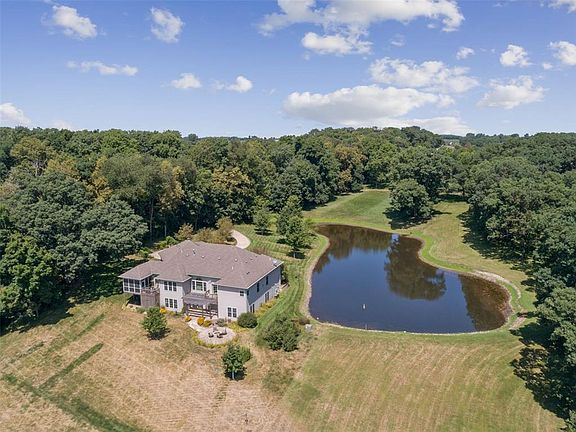 Imagine a secluded lane lined with trees and a beautiful country home at the end. This 1.33 acre lot is surrounded by breathtaking open space and a large private pond, that make you feel as if you are on a 20-acre private estate. The open-concept floor plan provides almost 3,000 sq feet on the main level. Every room has a view, either of beautiful Iowa fields or the large pond. The entry and formal dining room with 10-foot ceilings lead to the great room with large windows and incredible views. The kitchen area has a cozy hearth room, custom alder cabinets, a large island with granite counter tops, and high-end appliances. The office is another room with a breathtaking view and is walled with custom built cabinets. The master suite contains a beautiful deck, fireplace with sitting area, and large en-suite. The large screen porch sits just off the kitchen has a grilling deck with a view. The lower level contains three large bedrooms with large windows and again incredible views from all. The lower level family room is a full walk out with kitchen/ wet bar area. There is also ample storage in the remaining unfinished space. Not to be missed is the 3rd stall garage that was designed as heated shop area. There is also a whole house back up generator. To truly appreciate all the quality finishes of this home, you must see it in person, If you always wanted the country life, with all the convince of the suburbs, this is the place for you, call for your private showing. For GPS enter Timberlake Run , Cedar Rapids Iowa and follow the directional signs to Eagle View Lane.