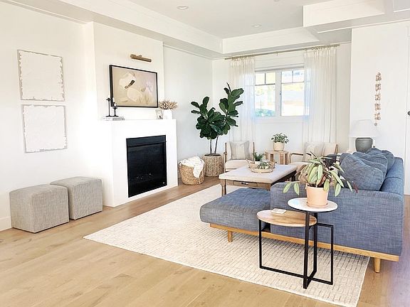 Built in 2020, this fully furnished custom home was professionally designed for California living. 12 feet of foldaway doors are the centerpiece of indoor/outdoor life, allowing entertaining to be simple, whether it's hosting your friends, or just your own family. The 9' kitchen island is the heart of the main floor that is open to almost the entire 1st floor. Custom oak cabinetry, commercial grade appliances, quartz countertops and indoor/outdoor bar will make you want to explore your culinary talents. The living room has a remote controlled gas fireplace and framed TV and additional downstairs room could be used as a home office, playroom, or additional bedroom with attached full-bath. There is also a 2pc powder room and under-stair doggy den with water faucet for your pup on the main floor. Upstairs has an open den with huge sectional couch, a 65" TV and surround sound with subwoofer and patio doors that open to the 2nd floor deck, for at home movie nights, or just watching sunsets. There are 2 bedrooms that share a jack and Jill bath, with private commode, and separate sinks. One bedroom has a twin over full bunk and the other a queen bed. The primary suite has a sliding doors to the deck, ocean views, and is complete with a king sized bed, custom walk-in closet and spa-like bath with large glass shower, soaking tub and dual sinks. There is also an upstairs laundry that completes the 2nd floor to minimize carrying laundry downstairs. The 2-car garage stores 2 electric bikes, a home gym and the whole home audio system that powers speaker zones in the back yard, front yard, living room, playroom, upstairs den, master bedroom and bath. Outside is low maintenance with turf front and backyards and citrus and olive trees. The backyard has a trampoline, hot tub, gas fireplace and built BBQ and outdoor fridge. The home is available for a 4 month period and prices and terms are negotiable. June/July will be more expensive monthly than April/May. We would prefer the full term, but 30+ day terms are possible. All utilities, internet included
