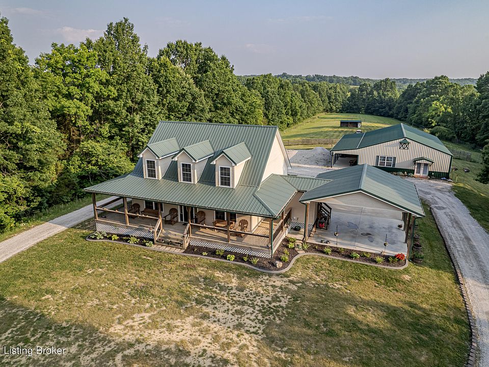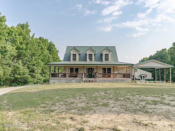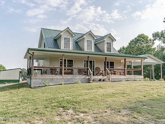 If peace, quiet, and tranquility is something you've been looking for in your life here is your chance to own it. This unique property offers a 3 bedroom and 2 bath cape cod house, a 1 bedroom and 2 bath barndominium with attached workshop, an equipment shed, pastures, run-in shed, and acres of wooded land great for hunting, exploring, or just lots and lots of privacy. The 1,951 sq ft cape cod features a wrap-around porch in the front, a two-story deck in the back, and an attached carport. The first floor has lots of natural light in the two-story great room with dormer windows, a beautifully finished kitchen with granite countertops, a huge laundry/mudroom, two spacious bedrooms, and a full bath. The entire second floor is the primary suite with a large bedroom overlooking the great room, a HUGE primary bath with two sinks separated by a cabinetry tower, an oversized jacuzzi tub, large tile shower with dual shower heads and a rain shower. The barndominium has 1,600 sqft of living space consisting of a large family room with propane fueled fireplace, full kitchen with island, full hall bath, primary suite with attached bath, a partially enclosed area that could be used for additional sleeping space or office/storage/flex space. There is an 800 sqft attached workshop attached with covered porch the length of the building. The equipment shed has 1 enclosed garage space and four open bays. The front pasture has a two stall run-in shed with storage space. Majority of the 34.48 acres is wooded with approximately 6 of those acres being cleared for housing and pastures. Wildlife galore, a creek, and trails for atv's make this a great home for anyone looking to hobby farm, outdoorsy people, or someone just looking to enjoy their own piece of paradise.