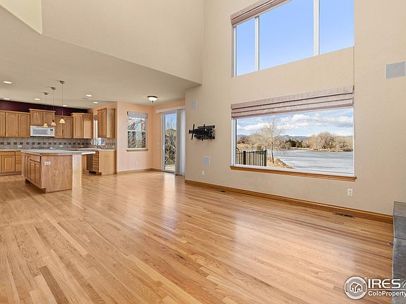 Possibly the best lot in Erie, Colorado, this home is perfectly situated to capture straight-on, panoramic mountain views overlooking Thomas Reservoir. Walls of windows flood the home with natural light, showcasing breathtaking scenery, soaring eagles, and stunning sunsets. Built in 2005, this home features vaulted ceilings, wood flooring, an open-concept design, a main-floor office, and all four bedrooms upstairs. The finished walk-out basement provides additional living space, while the three-car garage offers ample storage. Surrounded by miles of scenic trails and just a short distance to Erie's new Town Center, this rare lakefront setting presents an incredible opportunity to move in and enjoy or update to match your vision. Don't miss your chance to own a home with views that will impress.
