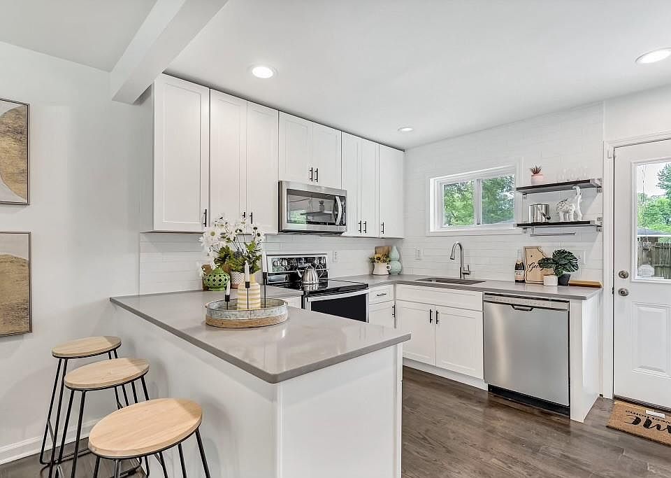 Welcome to this charmingly renovated ranch home boasting irresistible midcentury appeal. Step into the heart of the home, where a stunning kitchen awaits with exquisite tile wall accents, quartz countertops, and ample 42" cabinetry complemented by accent shelving and under-mount lighting. Equipped with modern stainless steel appliances, including a washer, dryer, and refrigerator, this kitchen is a chef's dream.Unwind in the luxurious Master Suite, large enough for a king-sized bed, featuring a master bath adorned with quartz cabinetry, a double vanity, and a walk-in shower for ultimate relaxation. The hall bath maintains the home's adorable charm, while the well-appointed secondary bedrooms offer versatility and comfort. Entertain with ease in the spacious Living Room, complete with an eye-catching accent wall and gleaming hardwood floors throughout. Step outside onto the deck, overlooking the expansive sunny backyard, perfect for outdoor gatherings and enjoying the fresh air. This home boasts a plethora of upgrades, including a new roof, HVAC system, electrical wiring, plumbing, insulation, as well as updated windows and doors, ensuring both comfort and peace of mind for years to come. Don't miss out on this remarkable opportunity to own a turnkey home in one of Decatur's hottest neighborhoods. Schedule your showing today!