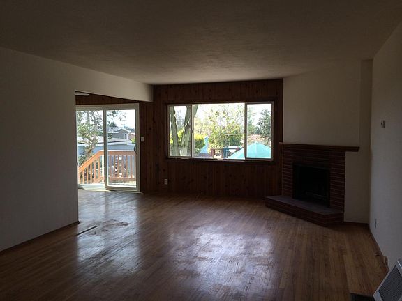 Hardwood floors throughout except kitchen and baths. Woodburning fireplace. Two car attached garage. Spacious R2 lot, with peek view of ocean and ready access to freeway. Always a nice ocean breeze. A short walk away is a 40+ acre city park, opened in the spring of 2015.