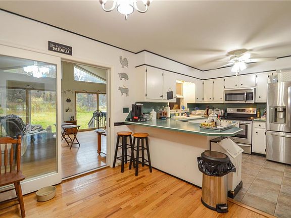 Expansive 4-bedroom, 2-bathroom Ranch home nestled on a tranquil cul-de-sac street, offering a generous 1.27-acre lot within the Pleasant Valley School District. Upon entering, you'll be embraced by the warmth of the sun-filled living room, an inviting dining area, and an open kitchen with breakfast seating. Further, the heart of this home lies in the generously sized family room, which also doubles as a sunroom, basking in an abundance of natural light and stunning views of the serene surroundings. As you venture down the hall, you'll find three generously sized bedrooms, a main full bathroom, and at the end of the corridor, a private sanctuary awaits: the primary bedroom suite. This retreat features a full bath with a jetted tub, a separate shower stall, a spacious walk-in closet, and the added convenience of direct access to the laundry room – making laundry day a breeze. Partially finished basement is accented with a cozy pellet stove and convenient access to a two-car garage. Additionally, there's an extra 1-car garage space that could serve as a workshop or provide valuable storage options. Step outside, and you'll find your own private oasis, complete with an in-ground pool, perfect for creating unforgettable memories with friends and family. With endless potential and value, this home can become your forever haven with a personal touch! Property is being sold as-is. Call today!