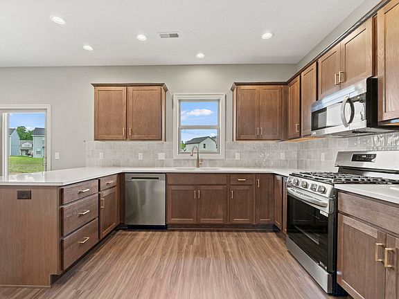 Take a look at this two story home in the desirable NWAC School system. Featuring 4 bedroom, 2 1/2 bath and a large loft/gathering area with 1979 living square footage. Open concept with the kitchen overlooking the dining and great room area and 9' ceilings on the first floor. Access out the back to a concrete patio, overlooking a neighborhood pond. LVP throughout the first floor as well as in the bathrooms, carpet elsewhere. The kitchen has quartz counter tops with a ceramic tile backsplash. Appliances included are a gas range/oven, dishwasher and over the range microwave, all in stainless steel. Off the kitchen is a large laundry area with a sink as well as a cabinet for folding cloths or set up a work station. The master suite has twin vanity sinks, 5' shower and a walk-in closet. A second space for desk or den area is at the top of the steps outside the bedrooms. The exterior of the home has mainance free vinyl siding, real sliced stone accents and trimmed with James Hardie trim. Certainteed Landmark dimensional shingles finish off the exterior of the home. With a three car garage, and a large driveway, pleany of places to park or store that special vehicle. This one won't last long, come out and take a look.