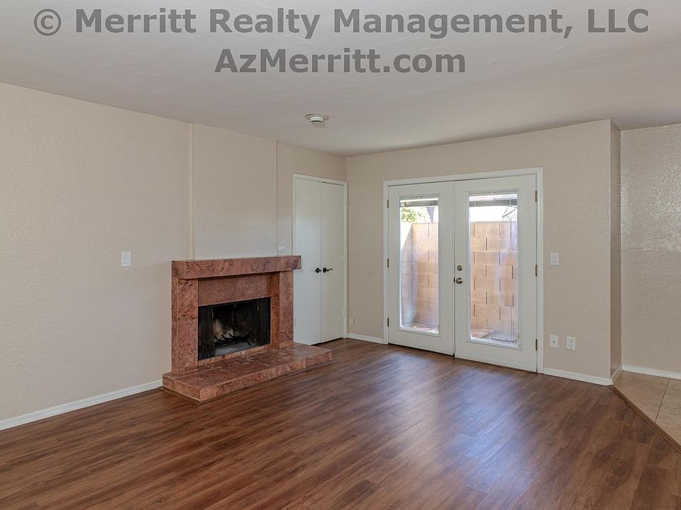 Great 2 bedroom, 2 bathroom updated home with a/c and much more! Beautiful plank flooring in bedrooms, gorgeous travertine tile in dining area, kitchen, and hallways and travertine tile kitchen countertops. Wonderful 1st floor apartment with extra-large closets, and two double pantries. This amazing home has a vessel sink in the primary bedroom, a tiled shower and tiled bath surround, ceiling fans, custom colors, a fireplace, tall ceilings and french doors to the fenced patio. Enjoy the breakfast bar, dishwasher, built in microwave, and central air conditioning. It has black appliances, updated bathrooms, a carport, pool, laundry room. Ready to move in! Perfect location in a small community centrally located near Pima and Swan. Close to Whole Foods Market, Sprouts Market, El Con, Tucson Medical Center, Banner UMC, U of A, Randolph Golf Course and Reid Park Zoo. Merritt Realty Management, L.L.C. is licensed with Arizona Department of Real Estate, an Equal Opportunity Housing provider, and is a BBB accredited member. This beautiful home is clean and ready to move-in. Contact us today to rent this home. Tenant pays Electric, landlord pays water/sewer/trash, this is a nonsmoking community. A small dog or up to two cats with additional deposit and pet rent. Rent quoted is based on 12 month lease.