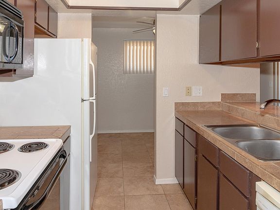 The photos, and virtual tour of this home are guaranteed to be of the actual unit and accurate. To tour this home give us the code that is shown on the refrigerator on the 3D tour. Large 1,100 square foot apartment with air conditioning. Well appointed with travertine and plank flooring, ceiling fans, and lots of closet space. This well laid out home also has a balcony, covered parking, community pool, and onsite laundry facilities. Electric range, refrigerator, and over the stove microwave. There is an abundance of cabinet space, a dining area, and even two pantries. Enjoy the wood fireplace during cold days or the holidays. Centrally location near Pima and Swan. Close to Whole Foods Market, Sprouts Market, El Con, Tucson Medical Center, Banner UMC, U of A, Randolph Golf Course and Reid Park Zoo. A cat would be allowed with an additional $150 deposit and $25 per month pet rent. $40 application fee per adult. No other fees or charges are required to move in. Merritt Realty Management is licensed with the Arizona Department of Real Estate and is an Equal Opportunity Housing provider. Tenant pays electric. Owner pays water/sewer/trash. This is a non smoking community. Rent is based on a 12 month lease. At the expiration of the lease renewals are available for month to month to 12 months.