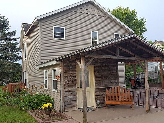 A two story 4 bedroom with 2 full baths. This home is on two lots, full of character many updates with authentic wood details, and walking distance to Public school. New light fixtures throughout first floor. Whirlpool bath in the upstairs master bedroom. Stairs leading up to large open area with linen closet. Beautiful backyard shaded by Pergola. Flower garden with raised garden bed in private fenced in back yard. Spacious 2 car garage with workbench, in floor heat and dry walled.