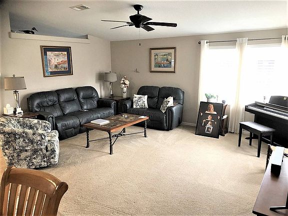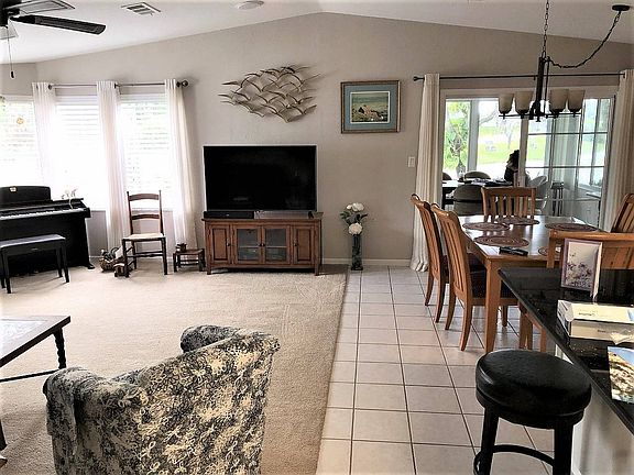2 BR 2 BA and Den Or Office, 1876 SQ. FT. Mostly furnished. 2 Car garage, Large lanai, With new AC, Large kitchen with loads of cabinets plus a large kitchen island, Great open floor plan with cathedral ceilings, Quartz counter tops, Laminate floors throughout, Covered back porch, Step in shower in master suite, High rise toilets, Double covered carport, Screened in lanai, New hot water heater, New Roof and AC.